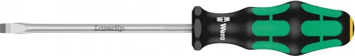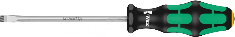 334 1,0 x 6,0 x 125 mm Slotted Schr. Dr. Minőségi Kraftform Plus csavarhúzó, Wera. Többkomponensű Kraftform markolat. Lasertip hegyek: Microdurva felület, amely a csavarfejbe harap. Ezáltal kevesebb a félresiklás, kevesebb erőkifejtés szükséges. Hatlapú gördülés védelemmel az elgurulás ellen. Markolatjelölés a szerszámok könnyebb megtalálása és rendszerezése érdekében. Ez a szöveg gépi fordítással készült. Kivitel: A Kraftform Plus csavarhúzó nagyobb erőátvitelt tesz lehetővé kisebb erőkifejtéssel, és megkíméli az egész kéz-kar rendszert – tartós igénybevétel mellett is. A kiválóan kézbe illő Kraftform markolattal elkerülhetők az olyan sérülések, mint a hólyagképződés vagy bőrkeményedés. A markolathoz használt kemény anyagok (fekete markolati részek) gyors fogást biztosítanak anélkül, hogy a bőrhöz tapadnának. A lágyabb " csúszásmentes" részek (zöld) lehetővé teszik a nagyobb erőkifejtés veszteségmentes átvitelét. A csavarprofilt és profilnagyságot megadó markolatjelölések megkönnyítik a csavarhúzók megtalálását a szerszámos táskában vagy a munkaasztalon. A hatszögletű hengervédő megakadályozza a bosszantó gördülést a munkahelyen. - Hogyan lehet megakadályozni, hogy kicsúszjon a csavarfejből? Újra és újra előfordul, hogy a csavarozáskor kicsúszik a csavarból. Ilyenkor esetleg még feszültség alatt álló alkatrészek közé is kicsúszhat. A Wera Lasertip csavarhúzók hegye lézersugárral mikroszkopikusan fel van durvítva. Ez a durva felület formálisan szilárdan " berágja" magát a csavarfejbe. Ez biztonságérzetet kelt, különösen, ha feszültség alatt dolgozunk. A lézer kezeléssel a pengehegybe egy mikrodurvaságú, szélső értékben 1000 Vickers keménységű felületet égetnek be. Ez formálisan szilárdan berágja magát a csavarfejbe. Előnye: kevésbé csúszik, nagyobb biztonság. A csavarhúzókészletek mindig falhoz rögzíthető állványokkal vannak ellátva. Így rendesen vannak tárolva és gyorsan hozzáférhetőek. Szállítás: 334 1,0 x 6,0 x 125 mm.
