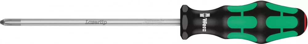 350 PH 2 x 150 mm-es csavarhúzó. Minőségi Kraftform Plus csavarhúzó, Wera. Többkomponensű Kraftform markolat. Lasertip hegyek: Microdurva felület, amely a csavarfejbe harap. Ezáltal kevesebb a félresiklás, kevesebb erőkifejtés szükséges. Hatlapú gördülés védelemmel az elgurulás ellen. Markolatjelölés a szerszámok könnyebb megtalálása és rendszerezése érdekében. Ez a szöveg gépi fordítással készült. Kivitel: A Kraftform Plus csavarhúzó nagyobb erőátvitelt tesz lehetővé kisebb erőkifejtéssel, és megkíméli az egész kéz-kar rendszert – tartós igénybevétel mellett is. A kiválóan kézbe illő Kraftform markolattal elkerülhetők az olyan sérülések, mint a hólyagképződés vagy bőrkeményedés. A markolathoz használt kemény anyagok (fekete markolati részek) gyors fogást biztosítanak anélkül, hogy a bőrhöz tapadnának. A lágyabb " csúszásmentes" részek (zöld) lehetővé teszik a nagyobb erőkifejtés veszteségmentes átvitelét. A csavarprofilt és profilnagyságot megadó markolatjelölések megkönnyítik a csavarhúzók megtalálását a szerszámos táskában vagy a munkaasztalon. A hatszögletű hengervédő megakadályozza a bosszantó gördülést a munkahelyen. - Hogyan lehet megakadályozni, hogy kicsúszjon a csavarfejből? Újra és újra előfordul, hogy a csavarozáskor kicsúszik a csavarból. Ilyenkor esetleg még feszültség alatt álló alkatrészek közé is kicsúszhat. A Wera Lasertip csavarhúzók hegye lézersugárral mikroszkopikusan fel van durvítva. Ez a durva felület formálisan szilárdan " berágja" magát a csavarfejbe. Ez biztonságérzetet kelt, különösen, ha feszültség alatt dolgozunk. A lézer kezeléssel a pengehegybe egy mikrodurvaságú, szélső értékben 1000 Vickers keménységű felületet égetnek be. Ez formálisan szilárdan berágja magát a csavarfejbe. Előnye: kevésbé csúszik, nagyobb biztonság. A csavarhúzókészletek mindig falhoz rögzíthető állványokkal vannak ellátva. Így rendesen vannak tárolva és gyorsan hozzáférhetőek. Szállítás: 350 PH 2 x 150 mm.