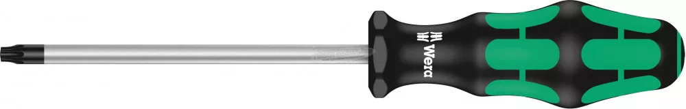 367 TX 40 x 130 mm TORX® csavarhúzó. Minőségi Kraftform Plus csavarhúzó, Wera. Többkomponensű Kraftform markolat, a gyors munkavégzéshez és különösen ergonomikus csavarozáshoz Hatlapú gördülés védelemmel az elgurulás ellen. Markolatjelölés a szerszámok könnyebb megtalálása és rendszerezése érdekében. Ez a szöveg gépi fordítással készült. Főbb jellemzők: Black Point hegy. Legömbölyödés elleni védelem. Kivitel: A Kraftform Plus csavarhúzó nagyobb erőátvitelt tesz lehetővé kisebb erőkifejtéssel, és megkíméli az egész kéz-kar rendszert – tartós igénybevétel mellett is. A kiválóan kézbe illő Kraftform markolattal elkerülhetők az olyan sérülések, mint a hólyagképződés vagy bőrkeményedés. A markolathoz használt kemény anyagok (fekete markolati részek) gyors fogást biztosítanak anélkül, hogy a bőrhöz tapadnának. A lágyabb " csúszásmentes" részek (zöld) lehetővé teszik a nagyobb erőkifejtés veszteségmentes átvitelét. A csavarprofilt és profilnagyságot megadó markolatjelölések megkönnyítik a csavarhúzók megtalálását a szerszámos táskában vagy a munkaasztalon. A hatlapú gördülés védelem megakadályozza a munkaterületről való elgurulását. Szállítás: 367 Torx TX 40.