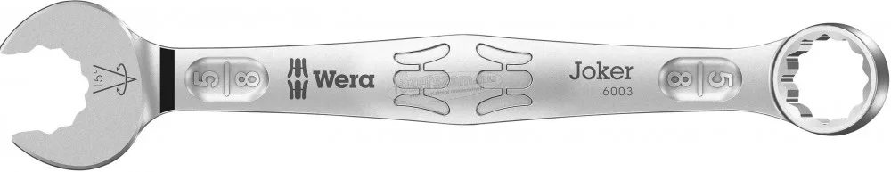 6003 Joker kombinációs csavarkulcs, birodalmi. Mivel a csavarozáshoz szükséges telepítési hely szűkül, szükségesek olyan szerszámok, amelyekkel a felhasználó sikeresen dolgozhat még ilyen helyzetekben is. A szűk telepítési helyekhez további rögzítési pontokra van szükség a szerszámhoz. Tehát a villáskulcsok úgy módosíthatók, hogy az eszköz alkalmazási lehetőségei növekedjenek? A száj 7,5 ° -kal elforgatott kombinációja és a kettős hatszög geometria megduplázza a rögzítési pontokat. Ha a kulcsot a csavarozás során 180 ° -kal többször elforgatják a hossztengely körül, négy rögzítési lehetőség van, és az anyákat vagy a csavarfejeket 15 ° -onként „be lehet csomagolni”. A Joker 6003 intelligens állkapocs-geometriájával jelentősen kibővíti a felhasználók körét zárt térben. A Joker 6003 minden forduló után automatikusan megtalálja a megfelelő kiindulási pontot. A vékony, de robusztus gyűrűs oldal a szerszámtengelyhez képest 15 ° -kal van szögben. A kiváló minőségű felületbevonat magas és tartós korrózióvédelmet biztosít. A Take it easy szerszámkeresővel: színkódolás méret szerint. Ez a szöveg gépi fordítással készült. Főbb jellemzők: Különösen alkalmas szűk helyekre. Karcsú, 15 ° -os szögű gyűrűs oldal. A szájban levő kis visszaszög 15 ° -onként megragadja a csavart. A Take it easy szerszámkeresővel: színkódolás méret szerint. A speciális állkapocs-geometria kiterjeszti az eszköz alkalmazási lehetőségeit. Szállítás: 6003 Joker kombinációs csavarkulcs, birodalmi, 5/8 " x 182 mm.
