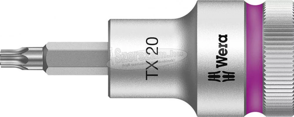 Cyclops foglalatkulcs 12,5 mm (1/2"), D 20 x 60 mm. Aljzatbetét a TORX® belső csavarokhoz. Kézi és gépi működéshez (ütésmentes). Króm-vanádium acélból készült és matt krómozott. Knurling a nagy tapadásért kézi működtetésnél. Tartó funkcióval a TORX® csavarokhoz, gömbfogó horonyhoz és színkódoláshoz.