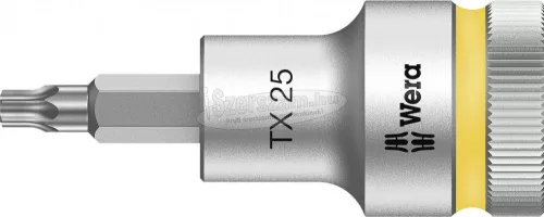Cyclops foglalatkulcs 12,5 mm (1/2"), D 25 x 60 mm. Aljzatbetét a TORX® belső csavarokhoz. Kézi és gépi működéshez (ütésmentes). Króm-vanádium acélból készült és matt krómozott. Knurling a nagy tapadásért kézi működtetésnél. Tartó funkcióval a TORX® csavarokhoz, gömbfogó horonyhoz és színkódoláshoz.