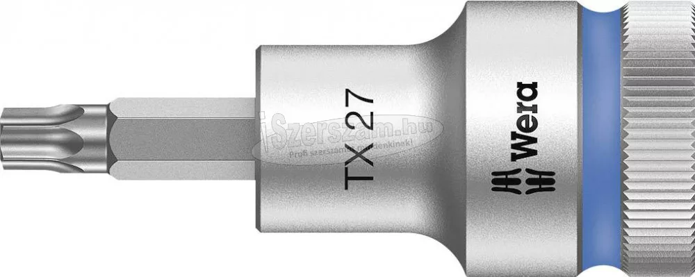 Cyclops foglalatkulcs 12,5 mm (1/2"), D 27 x 60 mm. Aljzatbetét a TORX® belső csavarokhoz. Kézi és gépi működéshez (ütésmentes). Króm-vanádium acélból készült és matt krómozott. Knurling a nagy tapadásért kézi működtetésnél. Tartó funkcióval a TORX® csavarokhoz, gömbfogó horonyhoz és színkódoláshoz.