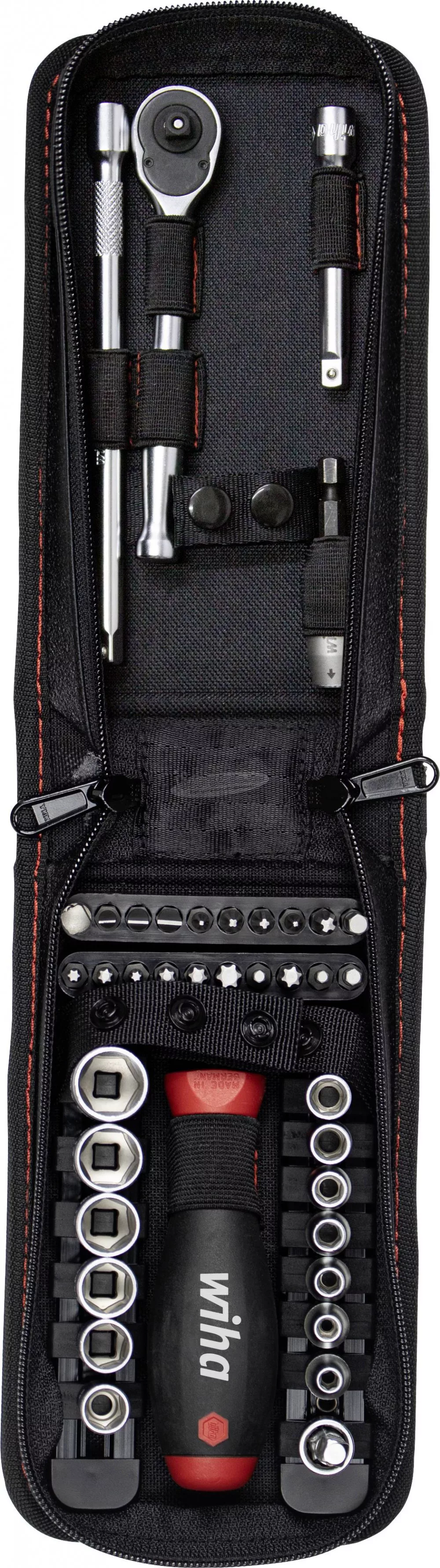 Dugókulcs és bitkészlet 1/4". Ha nincs megfelelő eszköz az alkalmazáshoz, felesleges időveszteséget jelent, különösen a mobil használat során. A 40 részes. A praktikus övtáska-csavaros csatlakozásnak köszönhetően az 1/4"-es csavarkulcs és a bitkészlet egyetlen kézzel egyszerűen elvégezhető. A legnépszerűbb 1/4"-es hatlapú kulcsos betétkészlettel 4 - 14 mm-es méretben, különféle bitekkel, egy bittartóval, egy racsnis kulccsal, két hosszabbítóval, egy kardántengellyel és egy 1/4" -es kulcsos adapterrel, a felhasználó készen áll a telepítésre - és az összeszerelés jól felszerelt. Ezenkívül az ergonómikus alakú SoftFinish® csavarhúzó mágneses bittartóval garantálja a különösen kézbarát csavaros csatlakozásokat. Az 1/4 hüvelykes csavarkulcs-adapternek köszönhetően a SoftFinish® csavarhúzó nemcsak a mellékelt bitek, hanem az aljzatkulcs-betétek használatára is használható. Ez lehetővé teszi a felhasználó számára az alkalmazások széles körét. A mellékelt racsnis kulcs a foglalatkulcsok kiválasztásával együtt biztosítja a szükséges rugalmasságot a munkában. A 72 fogú finom fogazásnak köszönhetően a felhasználónak rövid a visszatérési szöge, amikor a racsnis csavarkulccsal dolgozik. A jobb / bal forgás az integrált kapcsolókarral változtathatóan állítható. A mellékelt hosszabbítókkal kombinálva a mély anyák és csavarok problémamentesen elérhetők. A dugókulcsok és hosszabbítók mechanikusan vannak reteszelve. A változtatás a kioldógomb megnyomásával történik. Kiváló minőségű króm-vanádium acélból készülnek, a kulcsos betétek tartósságot és robusztust mutatnak, nem utolsósorban korrózióálló és könnyen tisztítható felületüknek köszönhetően. Okos kialakításának köszönhetően a praktikus táska övtáskaként és mindennapi tárolóként is használható a készlet számára. A csúszásgátló felület segít erős tartást elérni olajos vagy nedves munkakörülmények között is. Ez a szöveg gépi fordítással készült. Szállítás: 1x szerszám övtáska. 1x racsnis villáskulcs 1/4"-os reverzibilis kulcshoz (44666). 1x dugókulcs betét 1/4"külső hatszög 4 mm (44669). 1x hüvelykulcsbetét 1/4"külső hatszög 4,5 mm (44677). 1x dugókulcs betét 1/4"külső hatszög 6 mm (44670). 1x dugókulcs betét 1/4"külső hatszög 5,5 mm (44671). 1x dugókulcs betét 1/4"külső hatszög 6 mm (44672). 1x villáskulcs betét 1/4"külső hatszög 7 mm (44673). 1x dugókulcs betét 1/4"külső hatszög 8 mm (44674). 1x dugókulcs betét 1/4"külső hatszög 9 mm (44675). 1x dugókulcs betét 1/4"külső hatszög 10 mm (44676). 1x hüvelykulcsbetét 1/4"külső hatszög 11 mm (44678). 1x dugókulcs betét 1/4"külső hatszög 12 mm (44679). 1x dugókulcs betét 1/4"külső hatszög 13 mm (44680). 1x dugókulcs betét 1/4"külső hatszög 14 mm (44681). 1x 1/4"hosszabbító 75 mm-es foglalatokhoz (44667). 1x hosszabbítás 1/4"150 mm-es foglalatokhoz (44668). 1x kardáncsukló gömb belső négyzettel, külső négyzet 1/4"(44682). 1x csavarhúzó bittartóval SoftFinish® mágneses 1/4"125 mm (32160). 1x CentroFix Force bittartó mechanikusan zárható 1/4", mágneses (39133). 1x bit szabványos 25 mm-es rés 1/4"4,5 mm (01623). 1x bit szabványos 25 mm-es rés 1/4"5,5 mm (01624). 1x szabványos 25 mm-es rés 1/4"6,5 mm (01626). 1x szabványos 25 mm-es Phillips 1/4"PH1 (01657). 1x szabványos 25 mm-es Phillips 1/4"PH2 (01658). 1x bit standard 25 mm Pozidriv 1/4"PZ1 (01688). 1x bit standard 25 mm Pozidriv 1/4"PZ2 (01689). 1x bit standard 25 mm Pozidriv 1/4"PZ3 (01690). 1x szabványos 25 mm-es TORX® 1/4"T10 (01716). 1x szabványos 25 mm-es TORX® 1/4"T15 (01717). 1x szabványos 25 mm-es TORX® 1/4"T20 (01718). 1x szabványos 25 mm-es TORX® 1/4"T25 (01719). 1x szabványos 25 mm-es TORX® 1/4"T27 (01720). 1x szabványos 25 mm-es TORX® 1/4"T30 (01721). 1x szabványos 25 mm-es TORX® 1/4"T40 (01722). 1x bit szabványos 25 mm-es hatszög 1/4"3 mm (01705). 1x bit szabványos 25 mm-es hatszög 1/4"4 mm (01706). 1x szabványos 25 mm-es hatszög 1/4"(01707). 1x bit szabványos 25 mm hatszög 1/4"6 mm (01708). 1x szerszámszár belső négyzet, belső hatszög C6.3 1/4", 1/4" (01933).